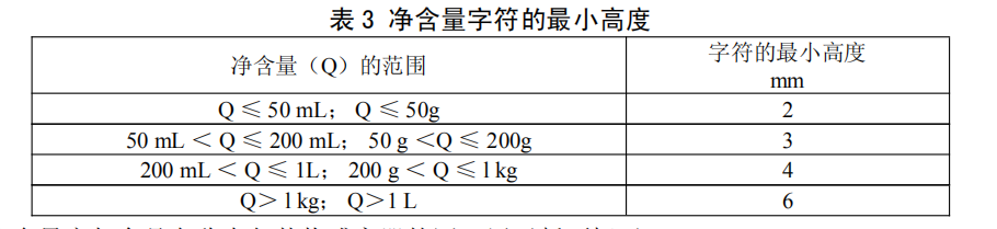 4.1.5.4 凈含量字符的最小高度應符合表 3 的規定。com